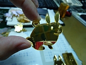 雷雕於金色鏡板的正面,再雷射切割外型。